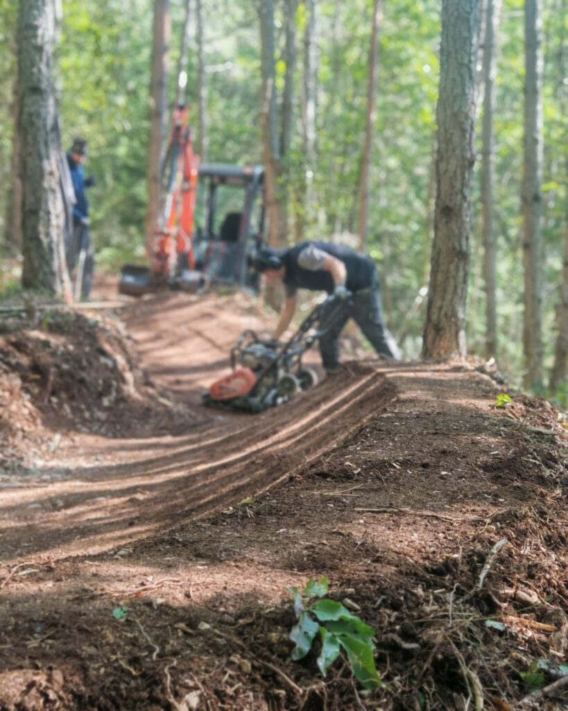 Der neue Abschnitt des MTB-Geländes wurde auf dem anspruchsvollen Gelände des südlichen Hangs der Osojnica angelegt. Die Arbeiten umfassten die sorgfältige Auszeichnung der Strecke, die Entfernung von Bewuchs, das grobe Formen der Elemente mit Maschinen sowie die abschließende manuelle Feinarbeit. Die Strecke ist mit einer Vibrationsplatte verdichtet und mit einem Drainagesystem ausgestattet, das nachhaltige Nutzung und Schutz vor Erosion gewährleistet. pivka.si